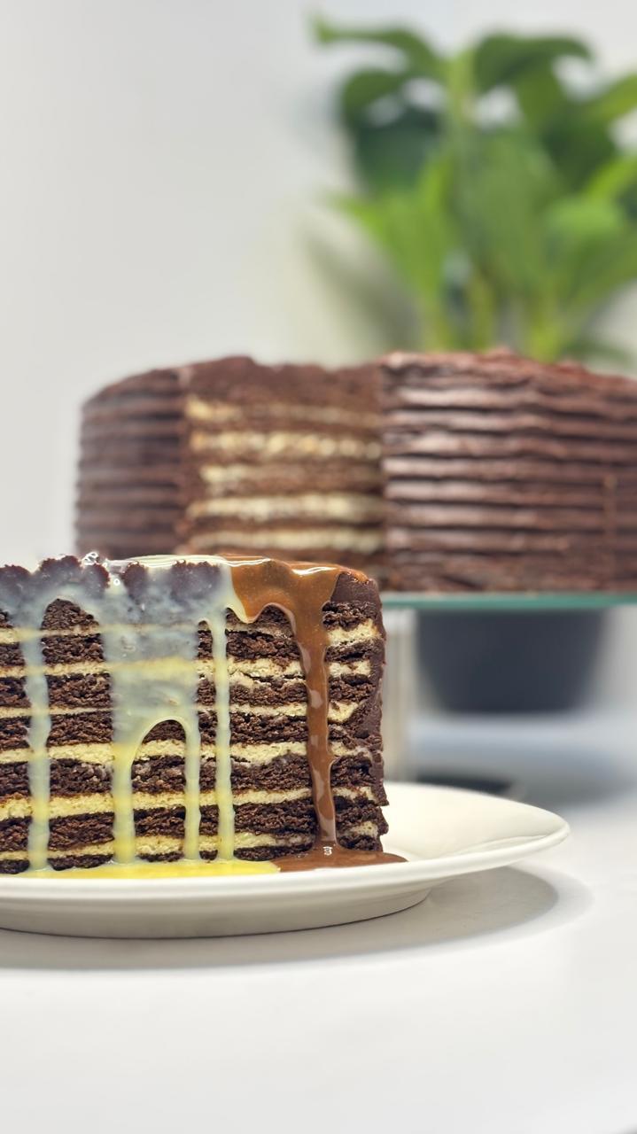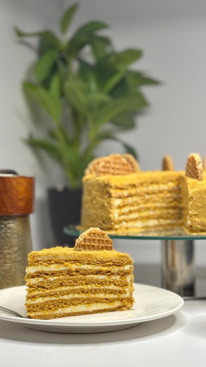 كيكة العسل الكلاسيك بحشوة التشيز والسولتد كراميل